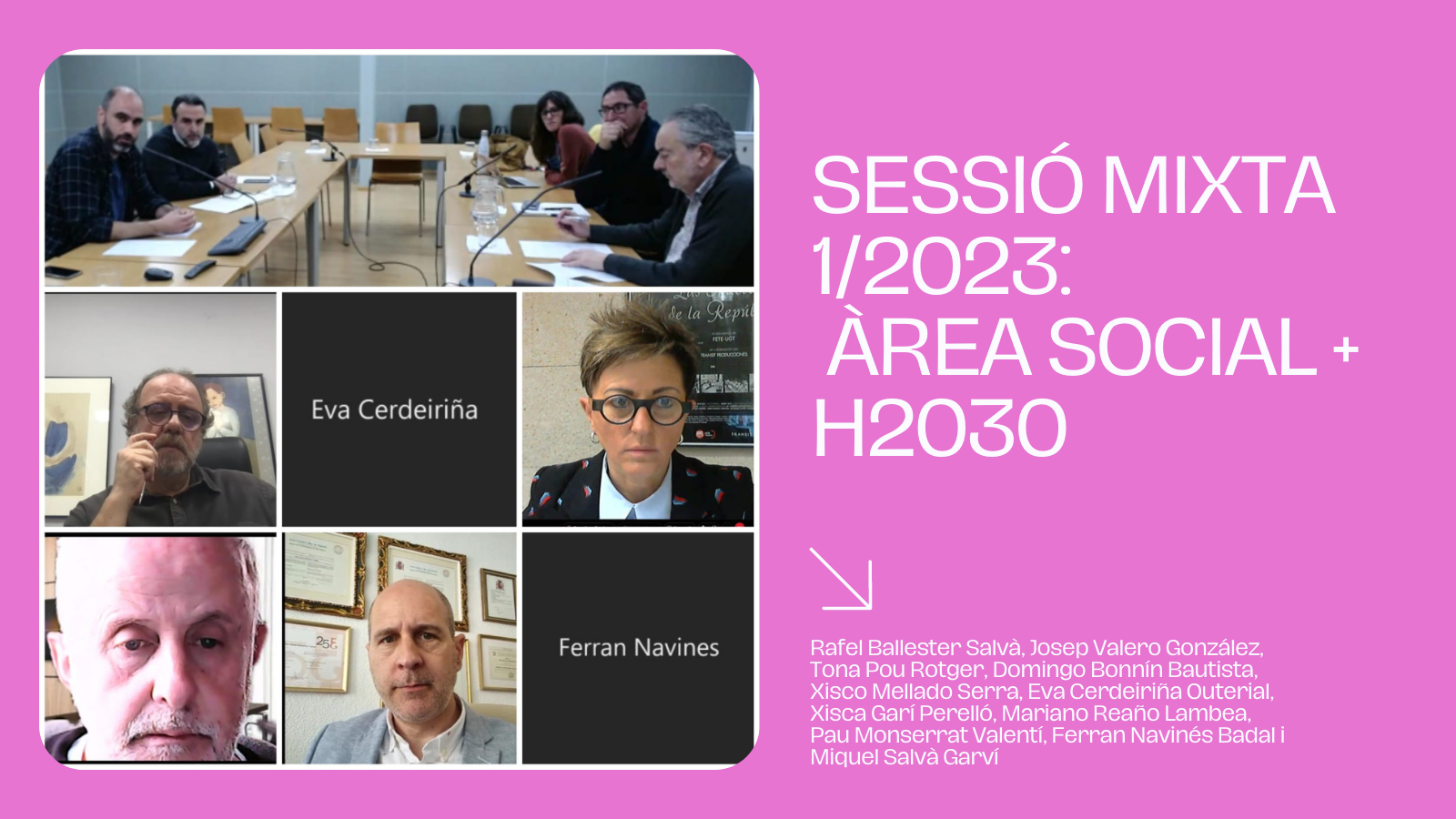 Sessió 1/2023 mixta de les comissions de treball de l'Àrea Social i de la de seguiment del dictamen H2030.