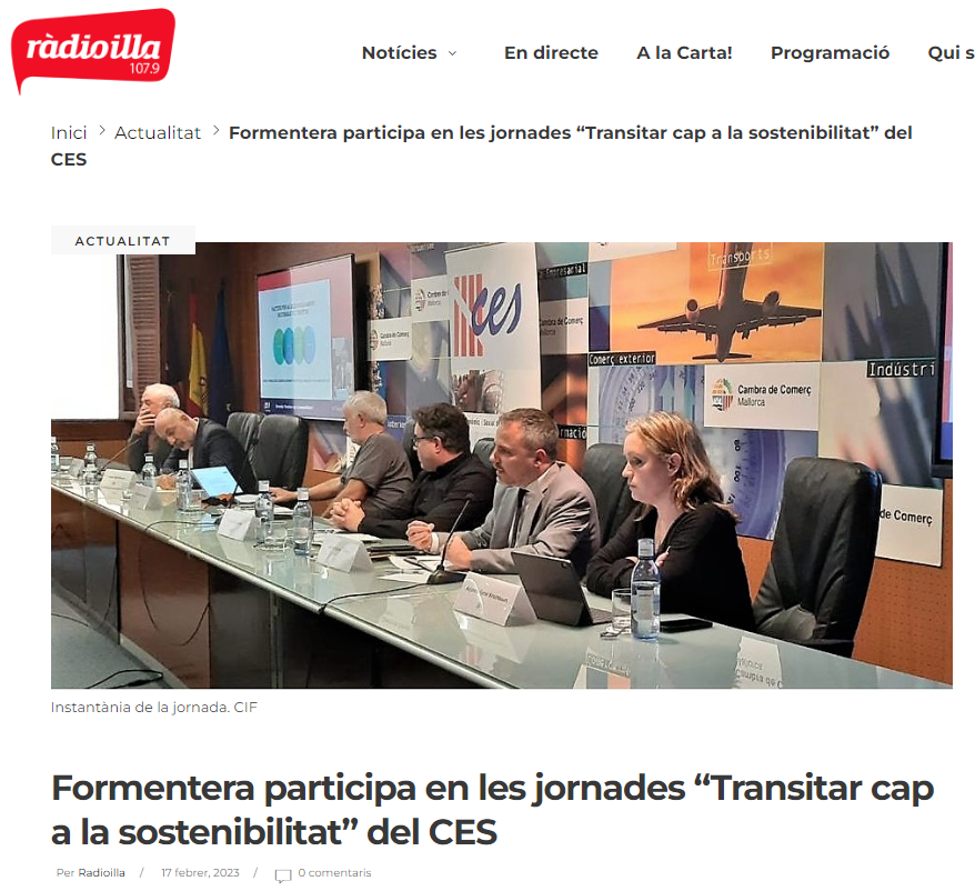 El artículo comenta la participación de Alejandra Ferrer, vicepresidenta y consejera de Turismo de Formentera, en las jornadas «Transitar hacia la sostenibilidad» organizadas por el CES