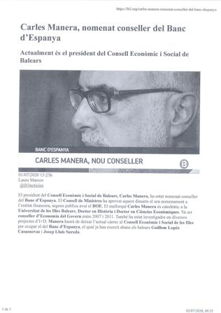 Carles Manera, nomenat conseller del Banc d'Espanya