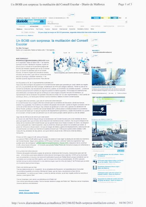 Un BOIB con sorpresa: la mutilación del Consell Escolar