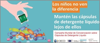| CAMPANYA MUNDIAL DE CONSCIENCIACIÓ SOBRE CÀPSULES DE DETERGENT LÍQUID Anualment, més de 16.000 persones al món (principalment nens) es van exposar a substàncies químiques presents en les càpsules de detergent líquid. |