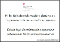 - Exponer permanentemente y en un lugar perfectamente visible un cartel informativo, redactado en catalán y castellano, con la leyenda «Hay hojas de reclamación o de denuncia a disposición del consumidor o usuario».
