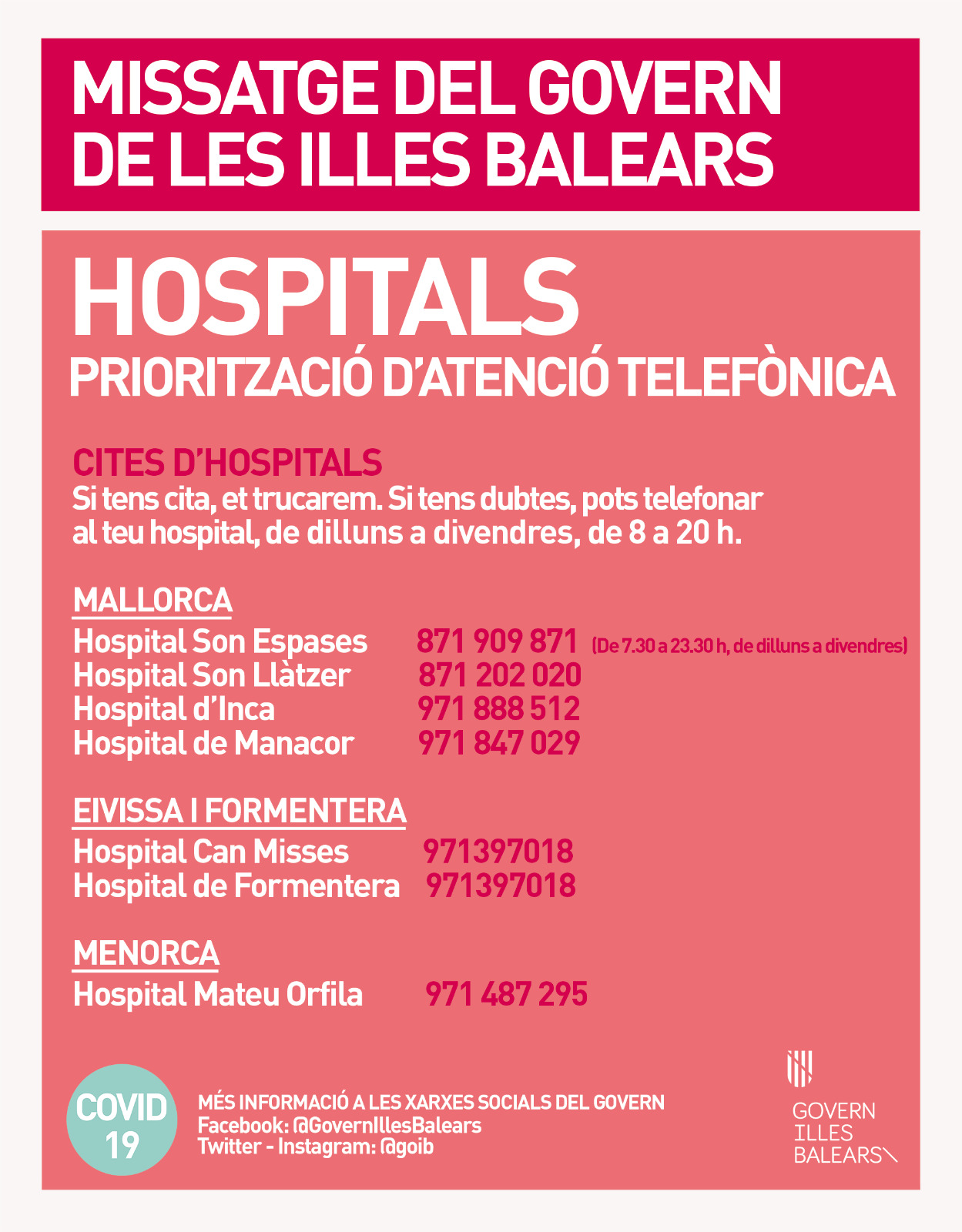 Servei d'atenció telefònica de 8 a 15 hores Whatsapp 24 hores |