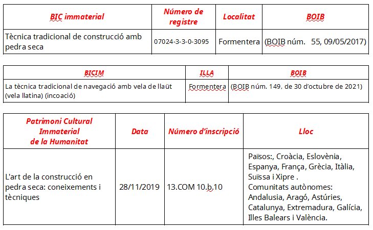 DECLARACIONS DE BÉNS D’INTERÈS CULTURAL IMMATERIAL A FORMENTERA