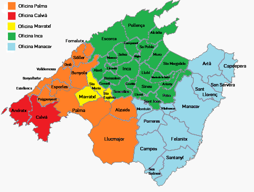 Relació de municipis que gestionen cada una de les oficines d'escolarització de Mallorca
