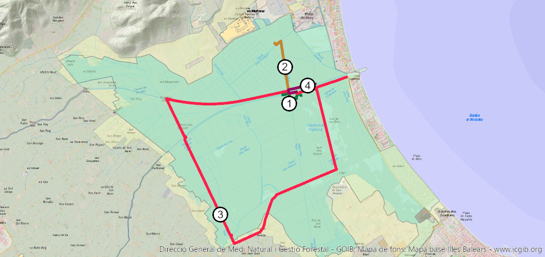 La entrada al parque se hace por el acceso de la carretera Ma-12 Alcúdia-Artà a la altura del puente de los Ingleses de la localidad de Playa de Muro.