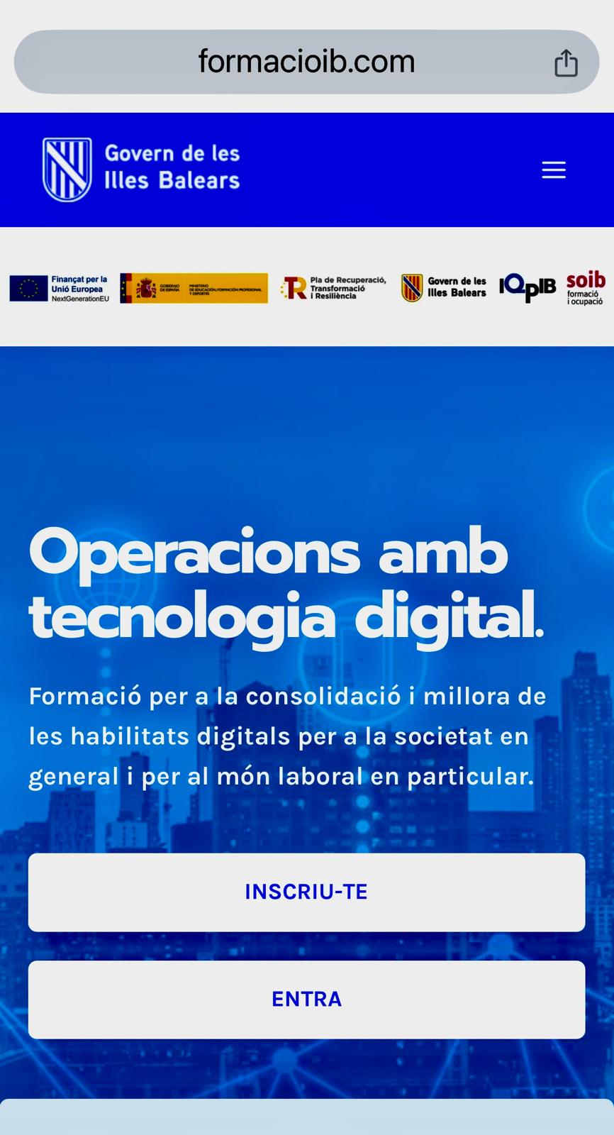 DestacadosIncripciones cerradas temporalmente (previsión enero 2026)Cualificaciones profesionales ofertadas Formación, cualificación y recualificación (upskilling-reskilling): Operaciones con tecnología digital en formacioib.com
