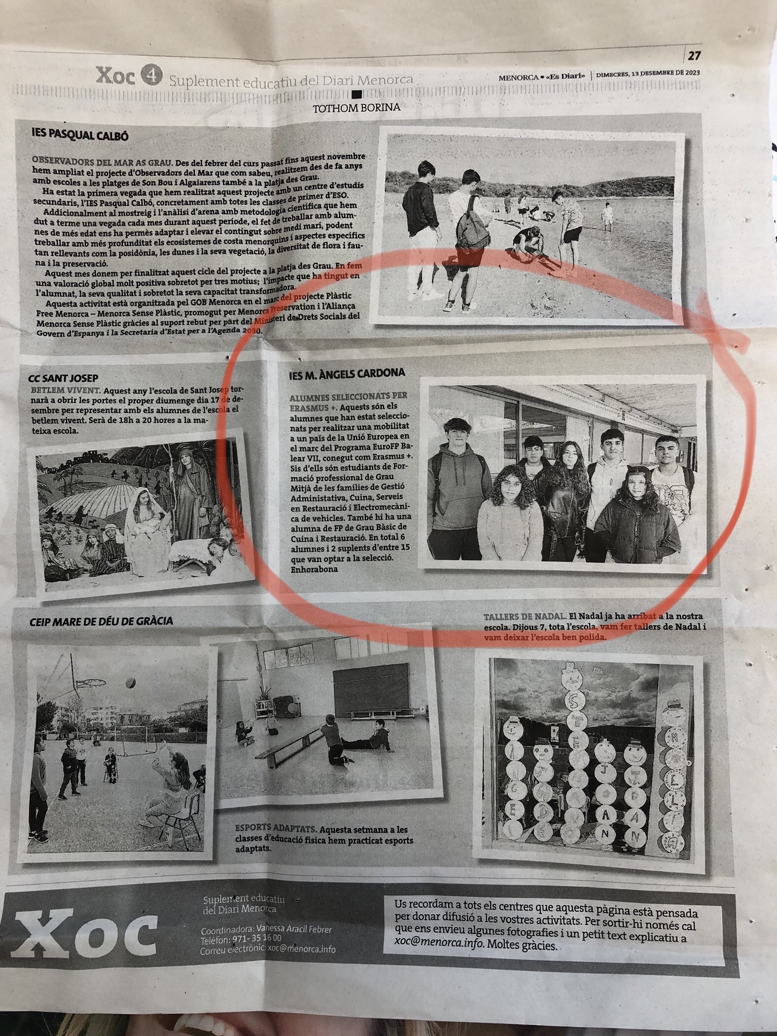 - IES Maria Àngels Cardona. Publicació al Suplement educatiu del Diari de Menorca el 13/12/2023