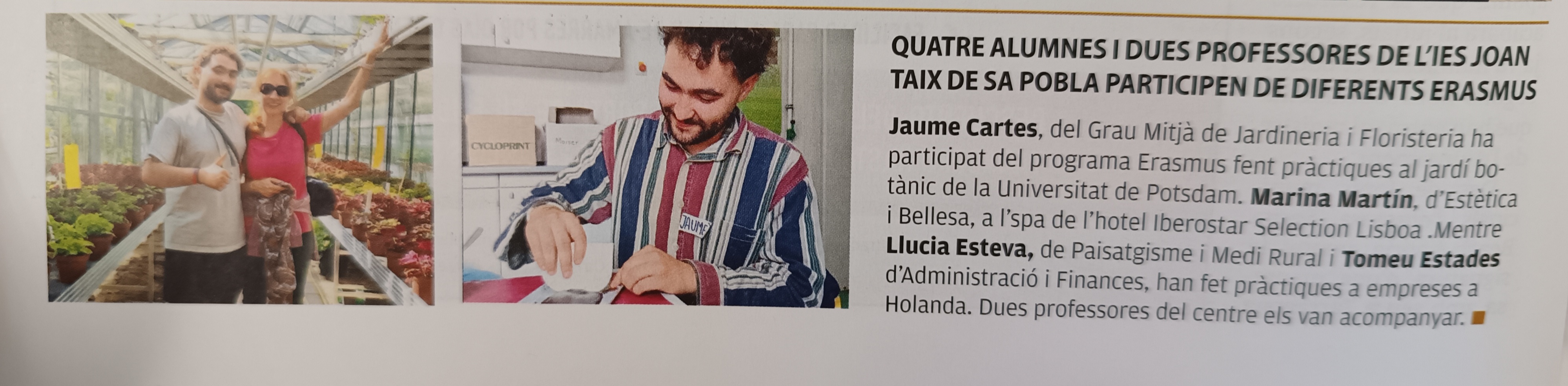 - CIFP Joan Taix. Publicació al primer número del mes de maig de 2024 de la revista Sa Plaça.