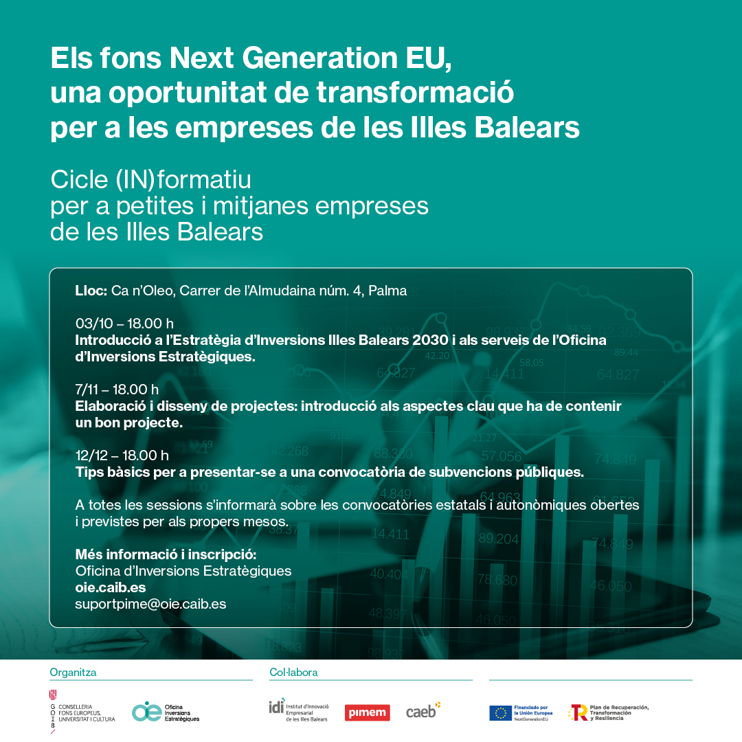 Sessions formatives i informatives «Els fons Next Generation EU, una oportunitat de transformació per a les empreses de les Illes Balears» dirigides a les pimes de la comunitat autònoma