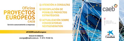 La Conselleria d'Economia, Hisenda i Innovació té un conveni amb la Confederació d'Associacions Empresarials de Balears (CAEB) en matèria de suport a les empreses per a l'accés als fons europeus. En el marc d'aquest conveni, s'ofereix un servei d'assessorament especialitzat en fons europeus i d'impuls a projectes empresarials transformadors a les empreses de les Illes Balears, al qual podeu accedir des de la seva web .