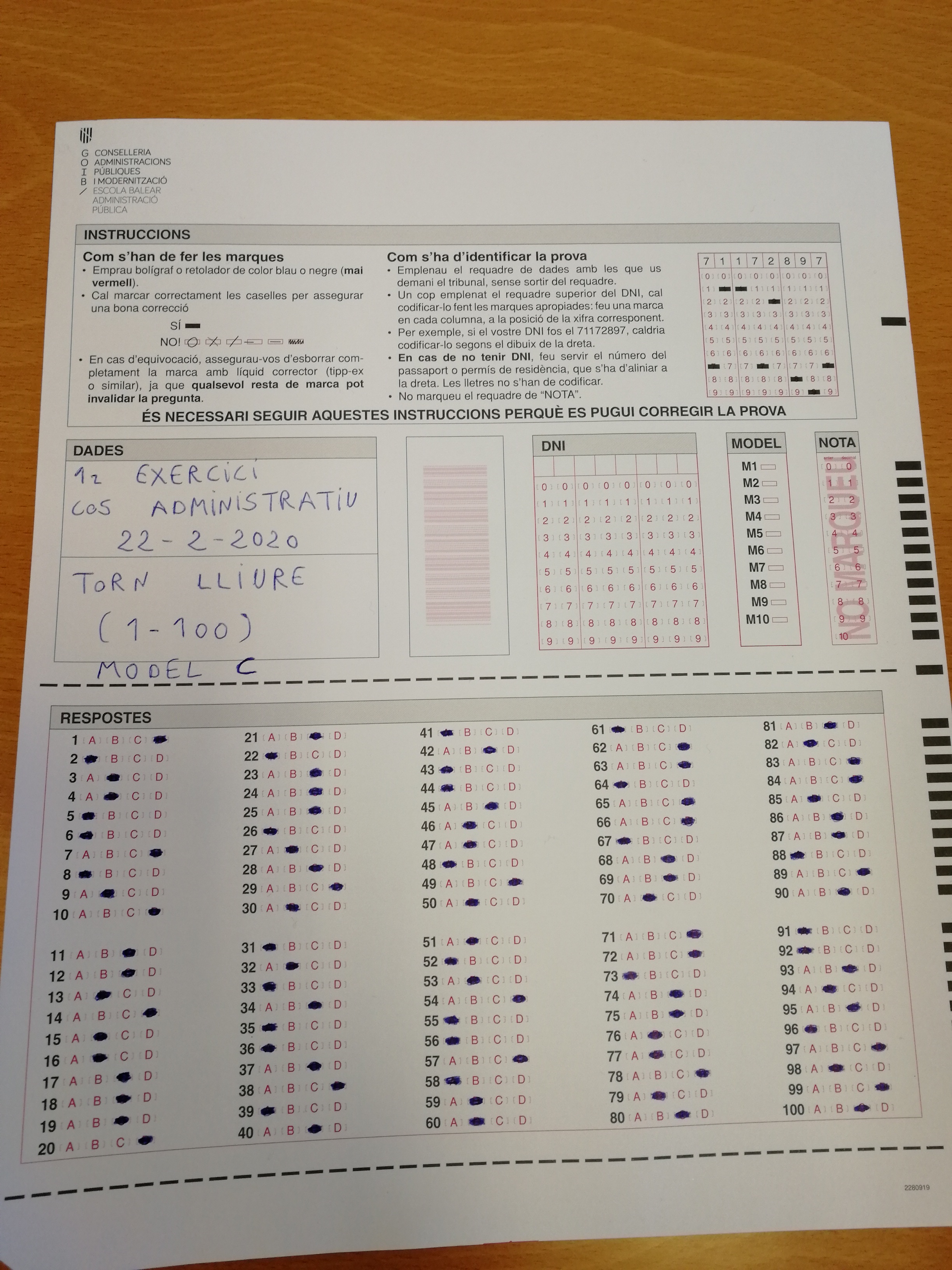 Cuerpo administrativo. Publicación de los cuestionarios del primer ejercicio y de las respuestas.