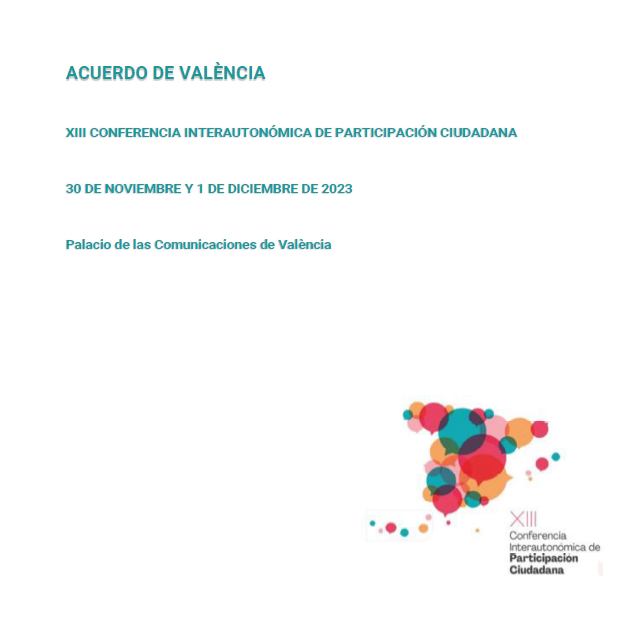 Durant la XIII Conferència Interautonòmica de Participació Ciutadana, celebrada els dies 30 de novembre i 1 de desembre de 2023 al Palau de les Comunicacions de València es va presentar l'Acord de València per un pla d'acció comú, que va ser subscrit per part de les comunitats autònomes participants.