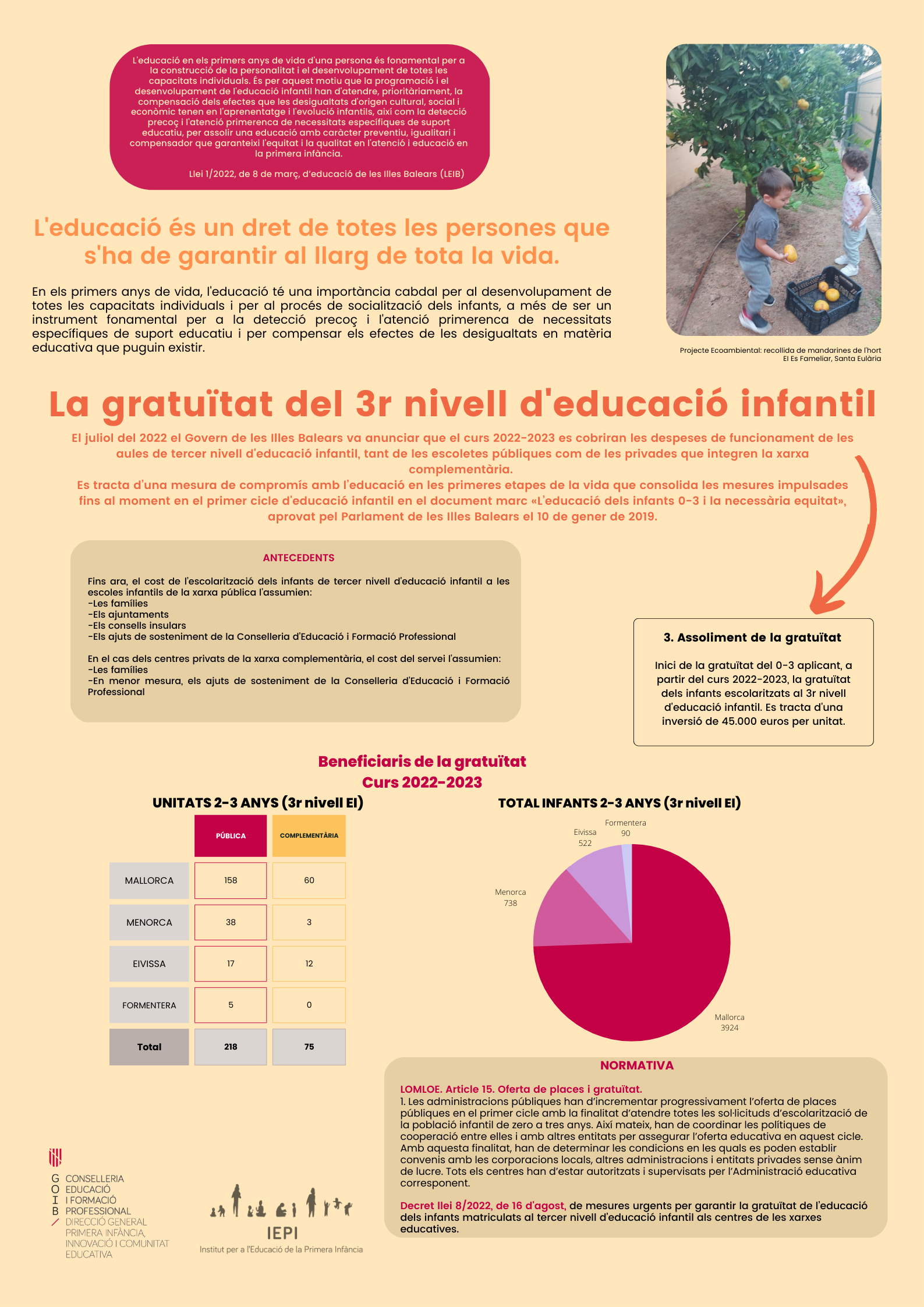 - Ayudas a la red pública de escoletes de las Illes Balears, escolarización y gratuidad.