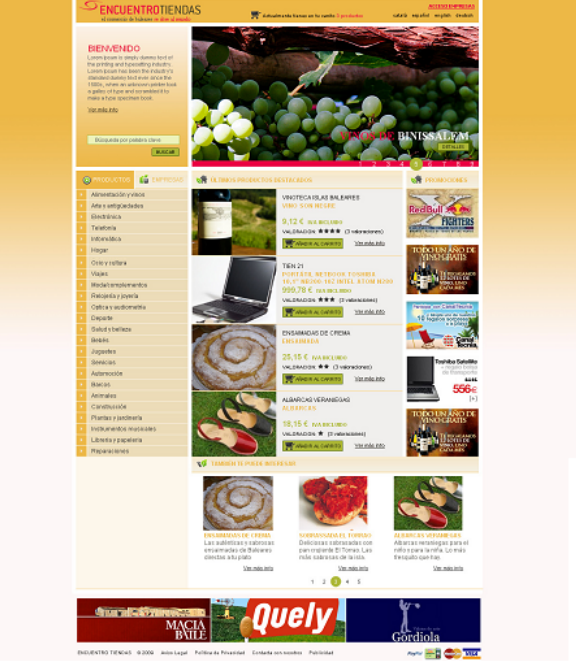 - Segmentació de continguts per seccions: fitxes de venedors, productes, ofertes especials, rebaixes, cupons, subastes, notícies, fòrum, anuncis, estadístiques, etc...