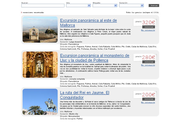 - Herramienta de gestión (back-office) de excursiones, guías y agencias.