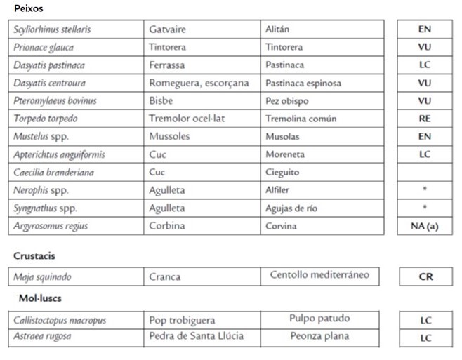 A part de les espècies de captura prohibida a tot l’Estat, dins l’àmbit de les reserves marines de les Illes Balears hi ha una sèrie d’espècies que a causa de la insatisfactòria situació de conservació en què es troben es regula la seva captura. Aquestes espècies són les següents: