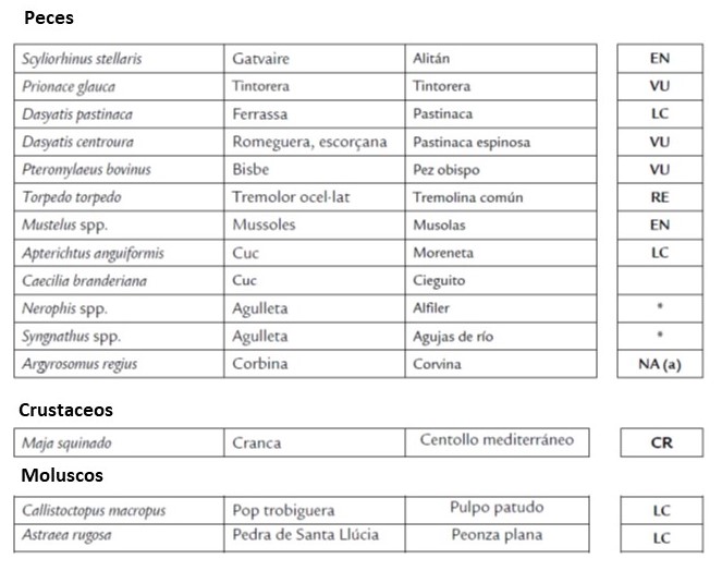 Aparte de las especies de captura prohibida en todo el Estado, dentro del ámbito de las reservas marinas de las Islas Baleares hay una serie de especies que debido a la insatisfactoria situación de conservación en que se encuentran se regula su captura. Estas especies son las siguientes: