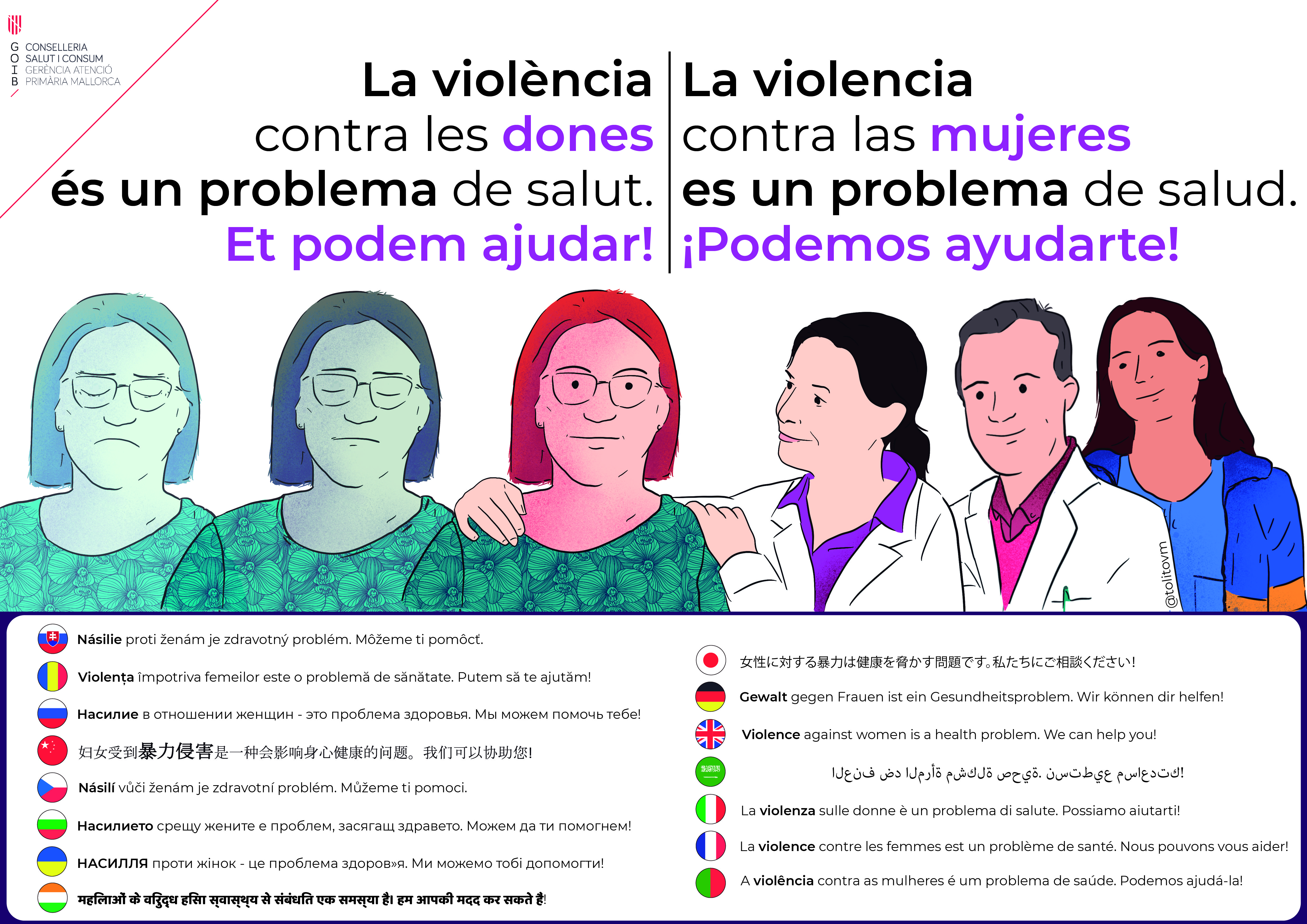 La violència contra les dones és un problema de salut. Et podem ajudar! (Descarregar cartell 16 idiomes)