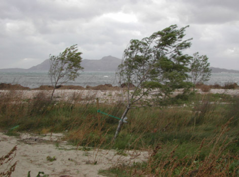 | Repoblació de pins afectada pel vent. Foto: © Luís Núñez |