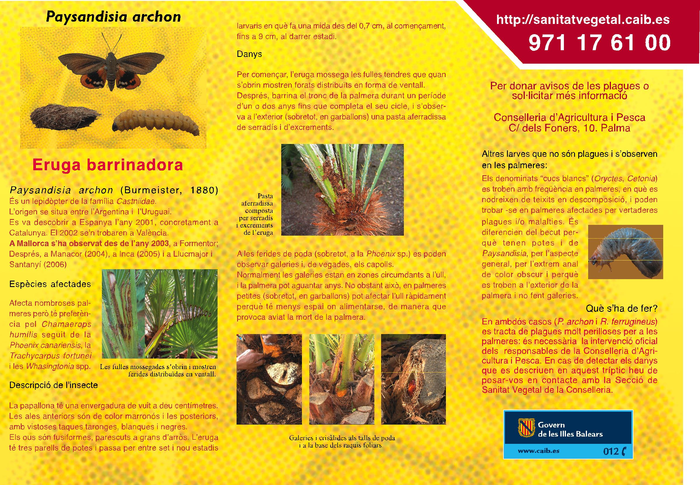 Fitxes visuals de l'eruga barrinadora del garballó (Paysandisia archon)