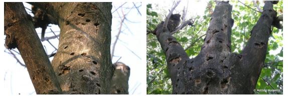 A diferencia de A. chinensis, los daños para A. glabripennis se localizan desde 1,5 m del suelo hasta la copa.