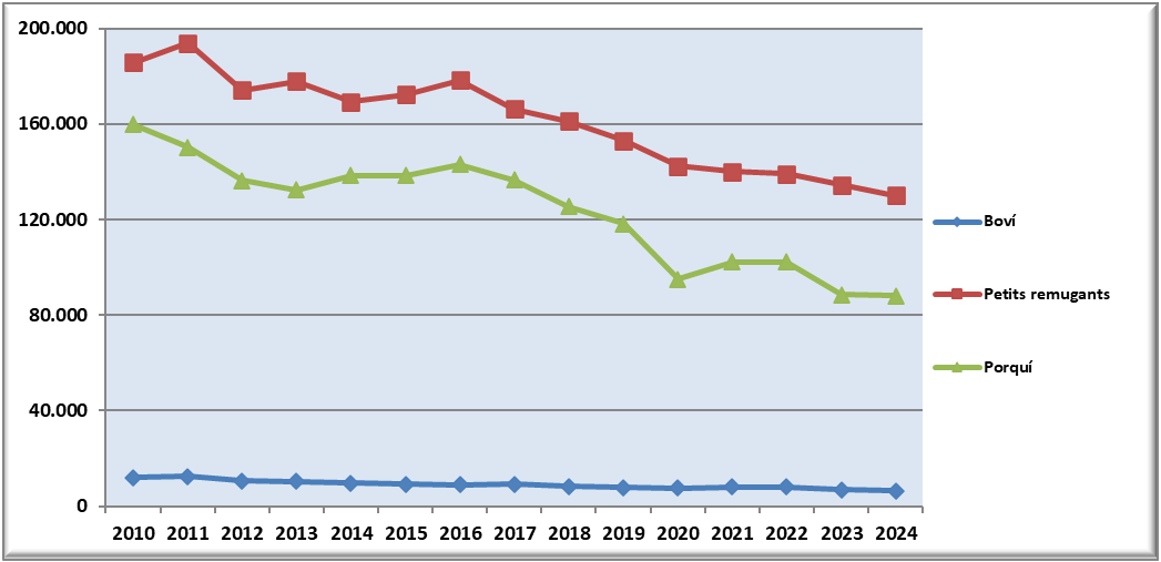 - Per a ungulats domèstics: aquests escorxadors sacrifiquen porcs, bous, ovelles, cabres i equins.