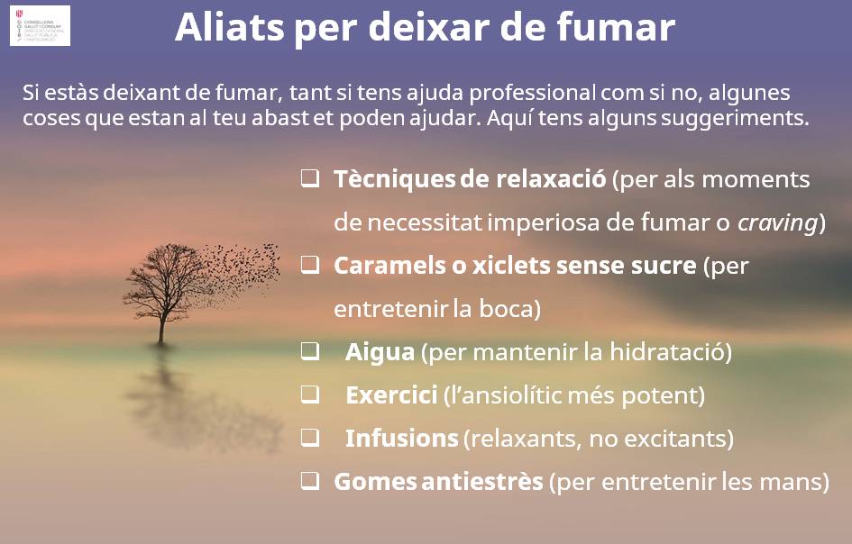 Esperam que t’ajudin. Si algunes dades o certa informació t’afecten o et generen una emoció negativa, no permetis que això et desanimi, sinó tot el contrari: aprofita-ho per reforçar els teus motius per fer l’intent de deixar de fumar.