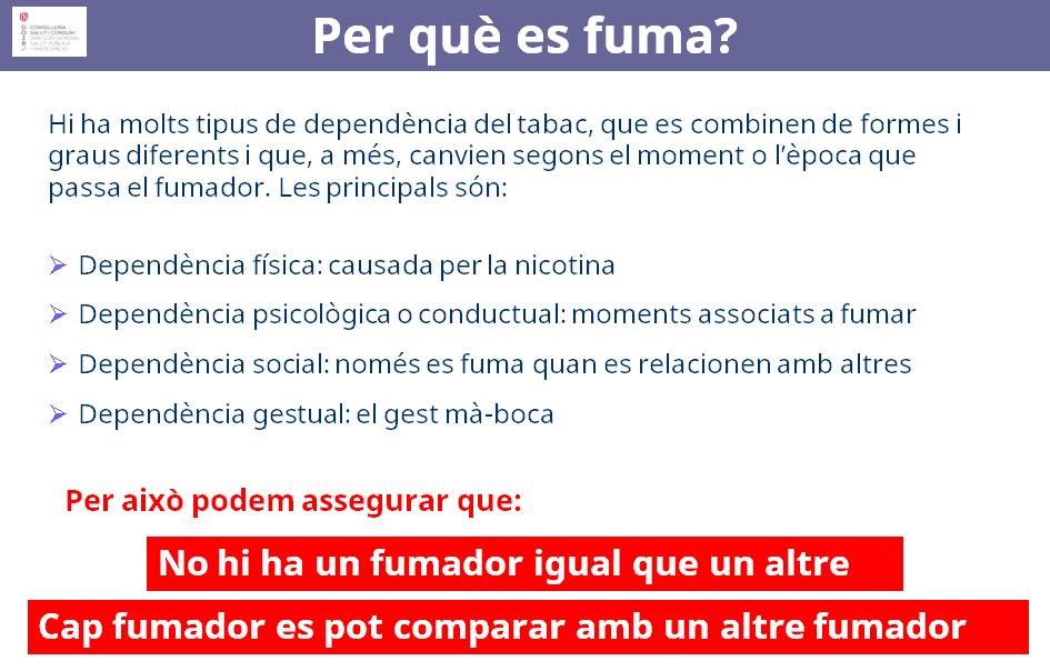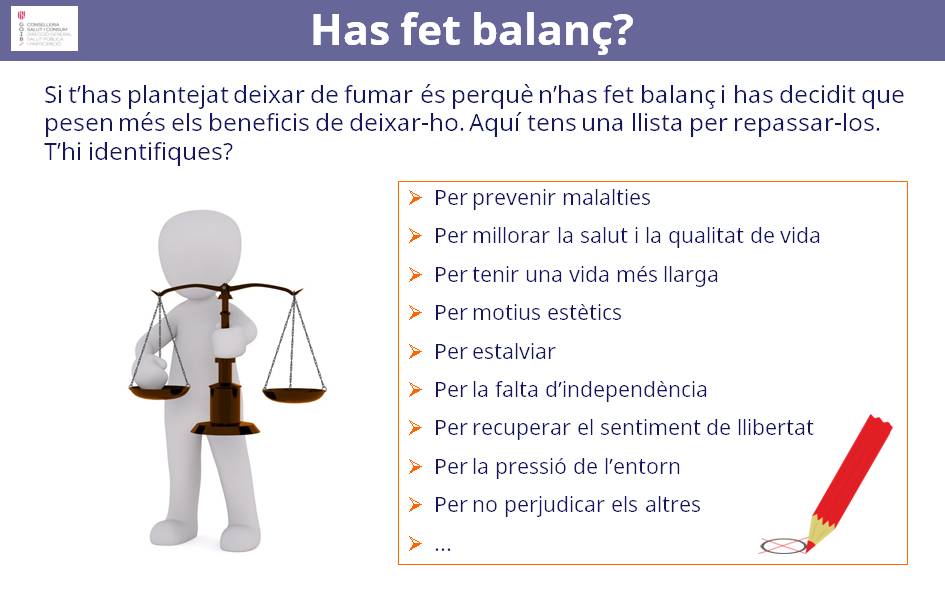 Si ets una persona fumadora, et felicitam per visitar aquest espai. Això vol dir que el fet de fumar t’inquieta i que potser vols fer un intent per deixar-ho. Si és així, ENHORABONA!