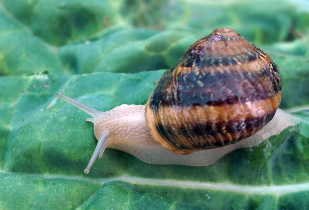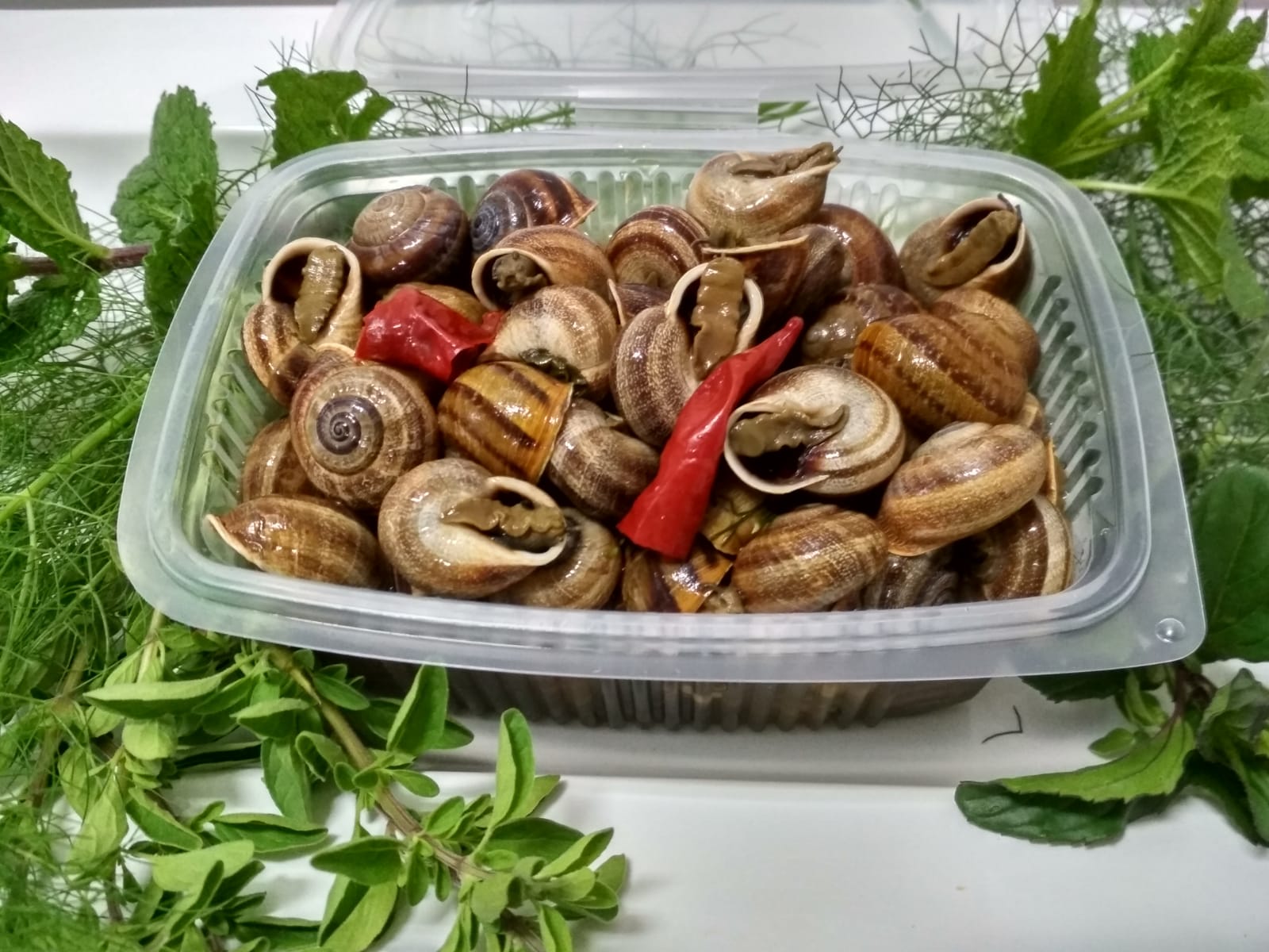 Caracoles vivos y caracoles cocinados. |