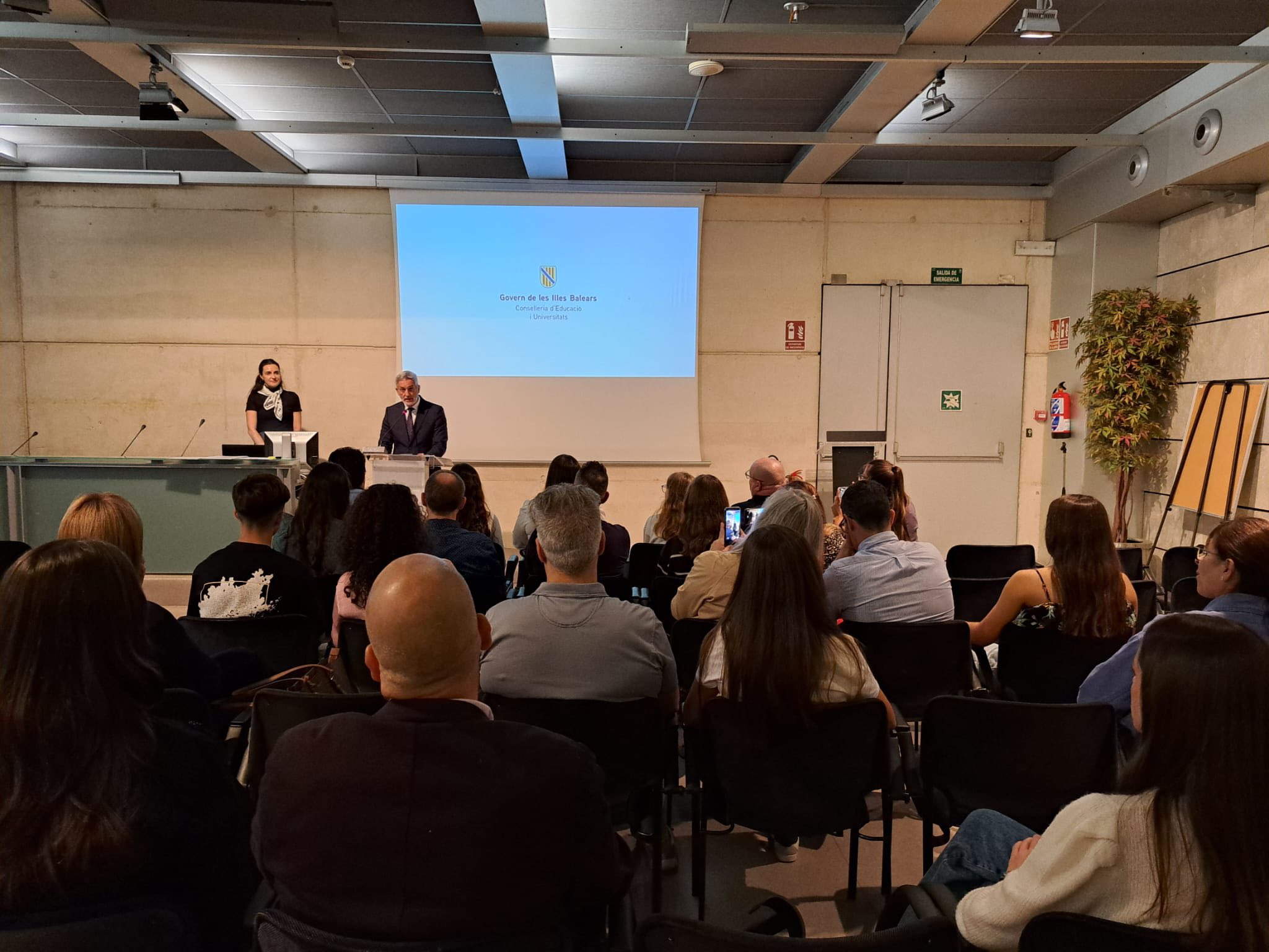 El secretario autonómico de Desarrollo Educativo, Mateu Suñer, y la directora general de Formación Profesional y Ordenación Educativa, María Isabel Salas, presidieron ayer, martes 4 de noviembre, el acto de reconocimiento a los alumnos de ESO de Mallorca galardonados con el doble premio al esfuerzo personal y al rendimiento académico excelente correspondiente al curso 2024-2025.
