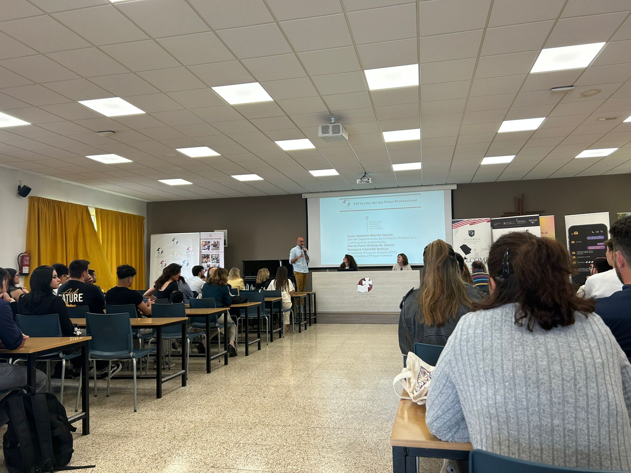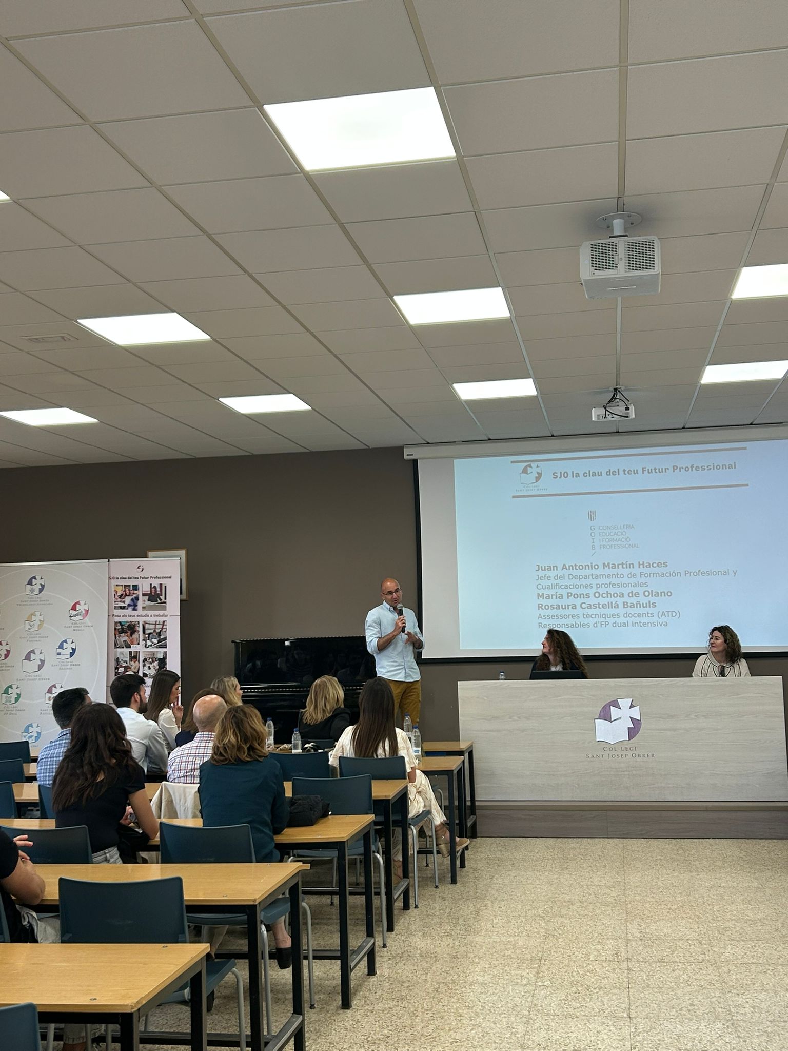 L’acte va ser conduït per Marta Jordà, cap d’estudis i coordinadora d’FP dual intensiva del col·legi Sant Josep Obrer I, i va comptar amb les intervencions de Cristina Julià, directora del Departament de Formació de la Cambra de Comerç de Mallorca, i d’Irene Ramallo, exalumna del programa i actual treballadora i tècnica de projectes de la mateixa Cambra de Comerç.
